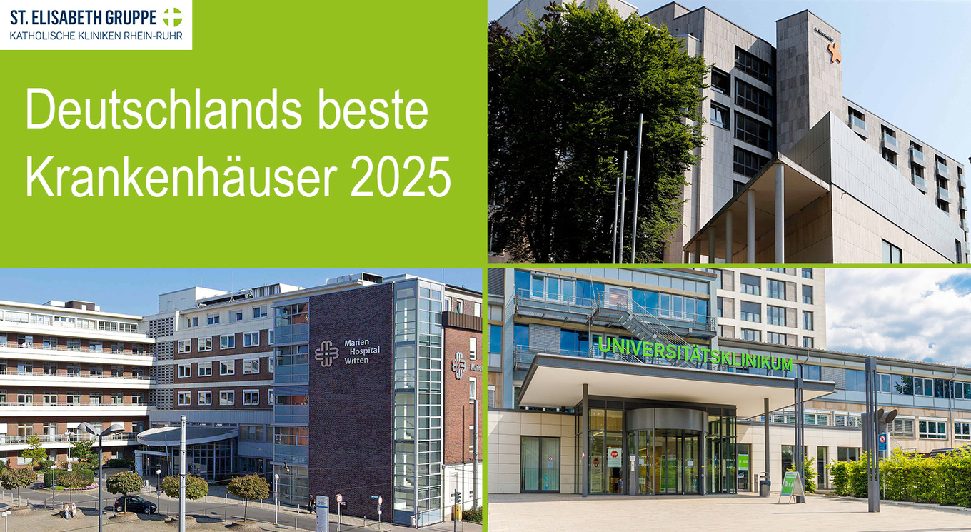 Das F.A.Z.-Institut hat auch in diesem Jahr wieder „Deutschlands beste Krankenhäuser“ ausgezeichnet – basierend auf einer Vielzahl von Daten. Drei Einrichtungen der St. Elisabeth Gruppe – Katholische Kliniken Rhein-Ruhr wurden 2025 als besonders leistungsstark bewertet: Das St. Anna Hospital Herne, das Marien Hospital Herne – Universitätsklinikum der Ruhr-Universität Bochum und das Marien Hospital Witten.